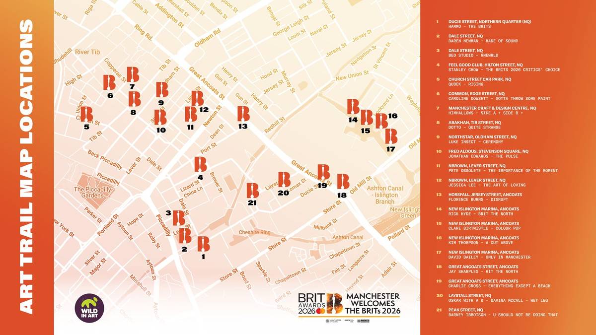 From a curated art trail championing North West artists to a bespoke exhibition showcasing iconic music artwork; with new details announced for FRINGE LAB, and a number of BRITs Week shows taking place in Manchester; alongside an in-conversation event with one of Manchester’s musical pioneers to a special zine celebrating the BRITs and the city; plus free tram travel for BRITs ticketholders – this calendar of activity will transform the city into a cultural playground and place Manchester at the heart of the BRITs.