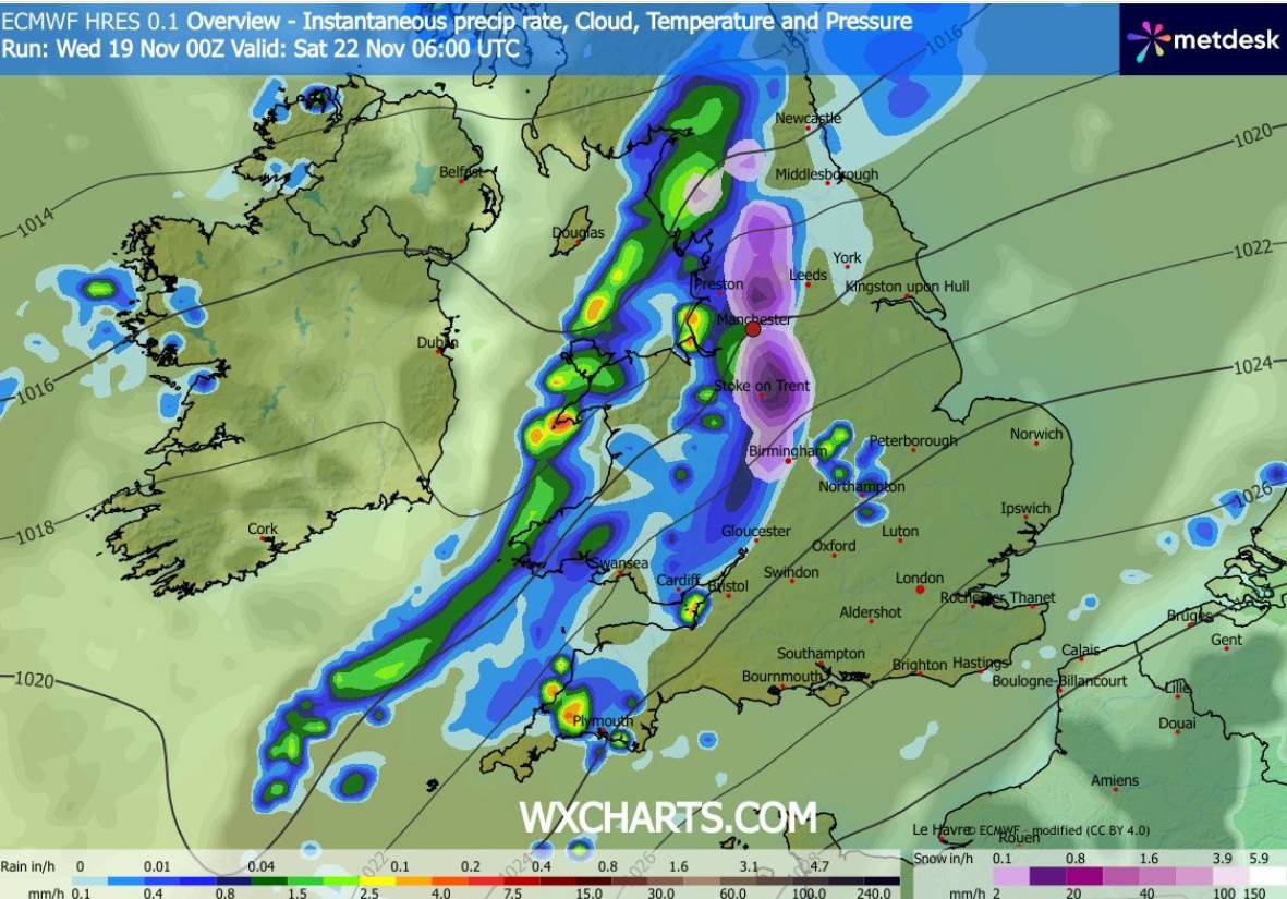 According to WX Charts, Saturday 22 November is set to bring snow to Greater Manchester.