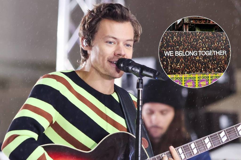 The posters have been pasted here, there and everywhere, depicting a crowd – seemingly holding phones up at one of his concerts – with the words ‘WE BELONG TOGETHER‘ in white across the centre. Small circles in the top right corner read ‘here we go again‘ alongside the website webelongtogether.co, which takes suspicious fans to an video version of the image on the posters.