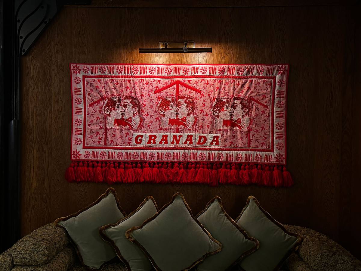 The studio’s glowing red Granada sign was removed in 2010 and is now housed in Manchester’s Science and Industry Museum. The old sign is replaced by Mollie’s signature playful red neon lettering.