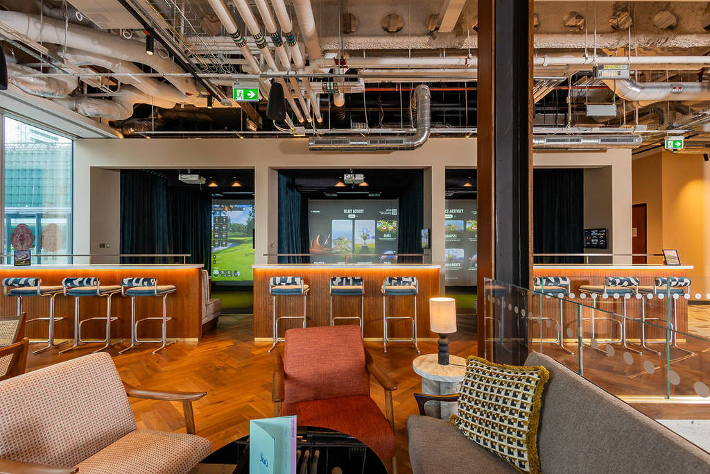At the heart of the venue sits a central bar and lounge, overlooking the buzzing square at Goods Yard through floor-to-ceiling windows. The bar provides an ideal setting for daytime working, relaxed socialising, or a bite to eat before some friendly competition in the simulator bays. Golf enthusiasts can also compete in ongoing competitions with sponsored prizes.
