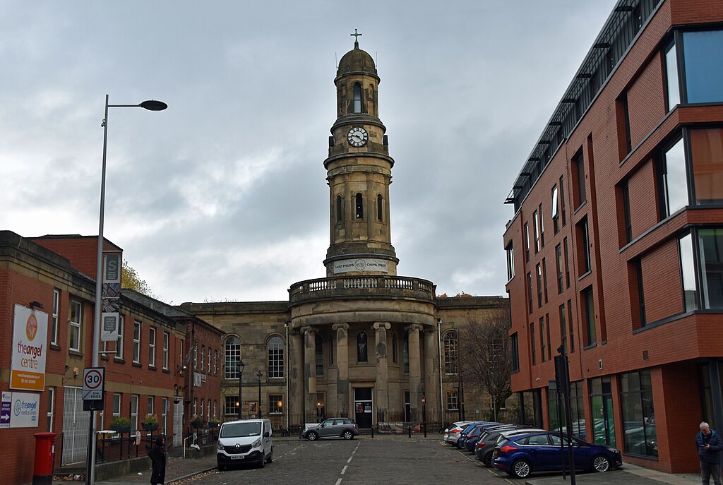 You’ll find St Philip’s Church at 2 Wilton Place, just off Chapel Street in Salford (M3 6FR), a short walk from Manchester city centre. It sits within the Chapel Street conservation area, surrounded by a mix of historic buildings and newer developments. Salford Central station is about 10 minutes away on foot, with plenty of bus routes stopping nearby, and Deansgate-Castlefield Metrolink around a 20-minute walk. Parking on-site is very limited, so it’s best to use nearby public car parks or street parking.